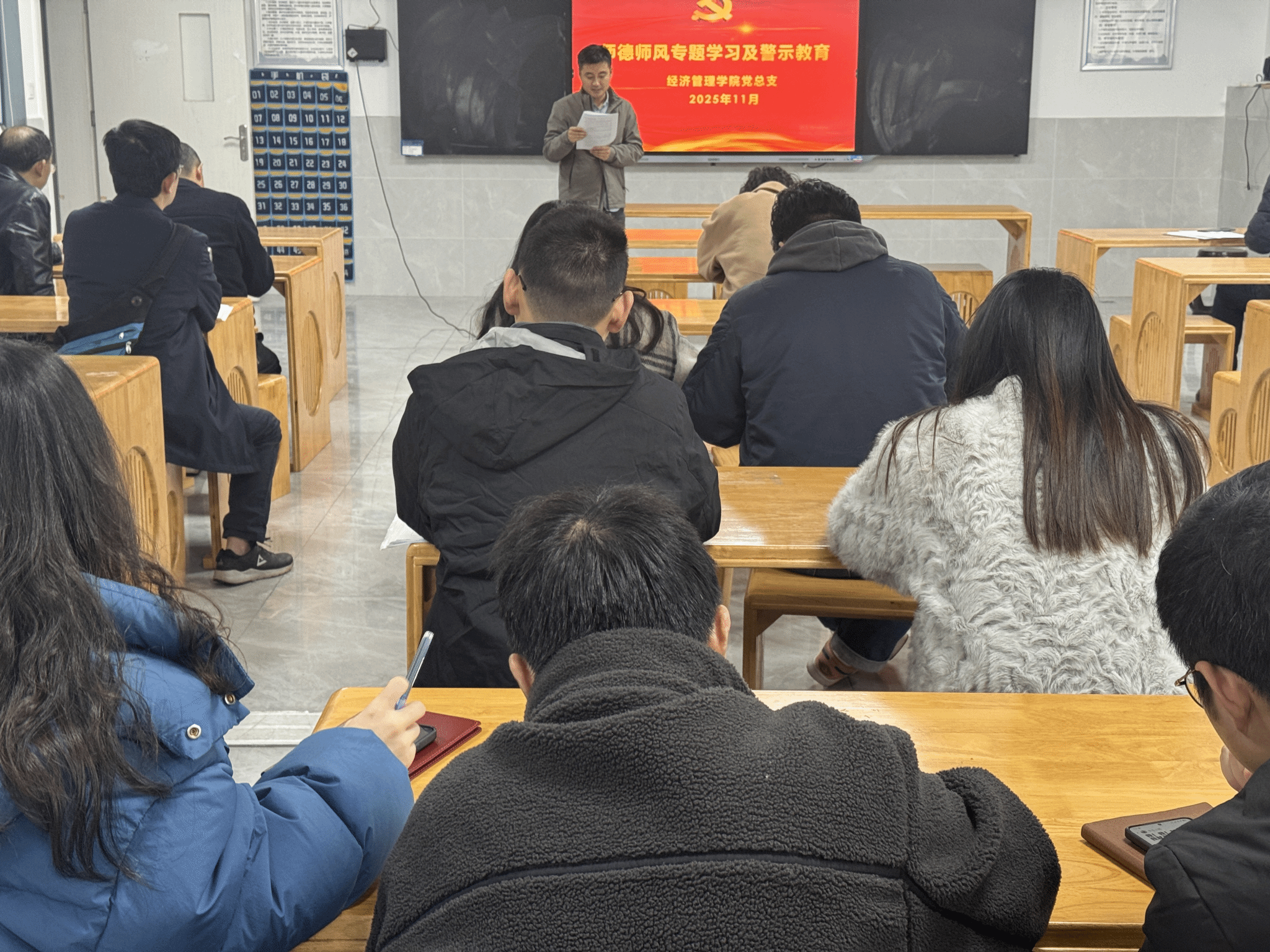 学院于2025年11月18日组织召开了全体教职工政治理论学习暨师德师风廉政警示教育会议,由党总支副书记张恩广主持,采用线上线下结合方式进行。