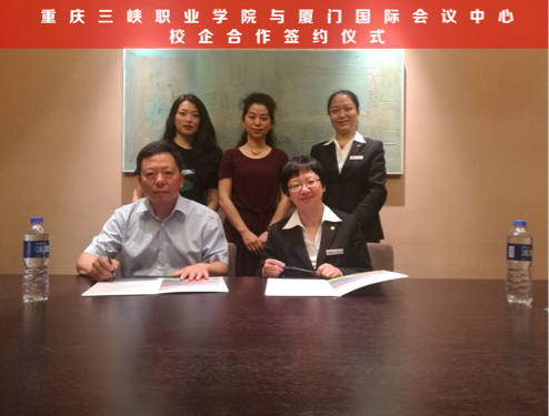 2017年10月10日,为进一步深化酒店管理专业务实合作,研讨产教融合、开展人文交流、推动校企合作发展规划,重庆三峡职业学院党委书记陈章,经济贸易系书记赵琳,酒店管理专业教师马茜等一行赴厦门建发集团下属的厦门国际会展中心,进行金砖国家会晤学生服务回访。负责厦门国际会议中心的副总邹滨和人力资源总监黄志雯亲自迎接,并引导陈章书记一行参观。
