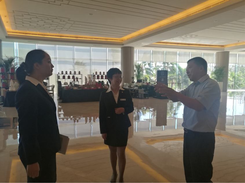 10月11日上午9时许,由邹总带领陈章书记前往本次金砖会晤服务主场馆进行参观,并亲自讲解了国际会务接待会场从建设、筹备、培训、演练到具体接待服务的全过程,并对参与本次会晤服务的我院酒店管理专业等十名学生的优秀表现给予了高度赞誉。