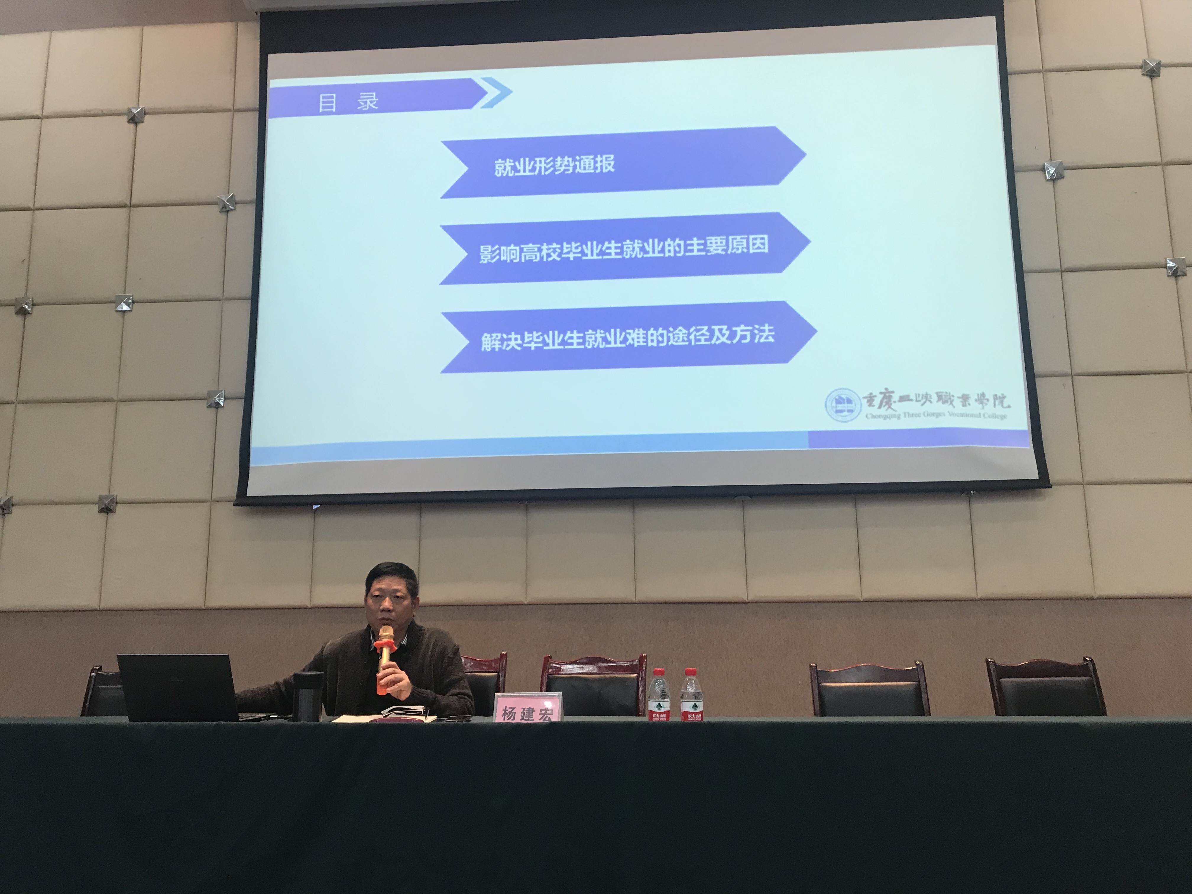 近年来,大学生就业问题已然成为社会关注的焦点,面对当前严峻的就业形势,为了做好我系2019届毕业生就业指导工作,教育、引导毕业生了解就业政策、正确认识就业形势,帮助毕业生进行科学合理的职业生涯规划设计,树立正确的择业观念,掌握正确的择业方向。2018年10月23日下午16时,经济贸易系党总支特邀请学院副院长、就业指导专家杨建宏教授在学院学术报告厅为经济贸易系2016级同学开展了《高校毕业学生就业压力情况分析及解决途径研究》就业指导专题讲座,讲座由经济贸易系周长春主任主持,经济贸易系全体大三辅导员老师参加了此次讲座。
