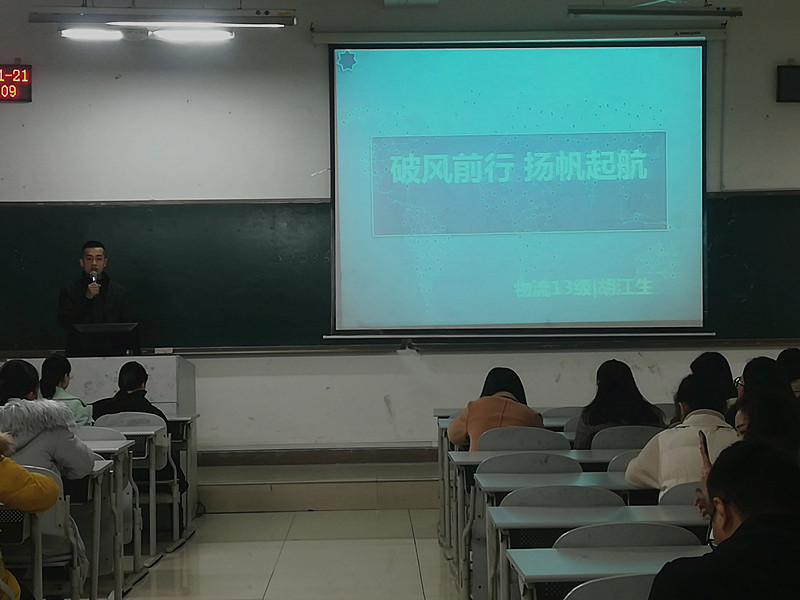 为提升我系应届毕业大学生的创就业意识和竞争力,激励他们更好地做好准备,在进入社会之际能够破风前行,扬帆起航,经济贸易系于11月21日18:00在博雅楼307举行“优秀校友创新创业分享”讲座。本次讲座特邀我系2016届优秀校友、小胡校园快递菜鸟驿站创始人、重庆携维货运代理有限公司总经理胡江生前来为同学们主讲,经贸系大三学生代表共计120余人参加。