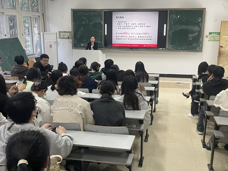 在宣讲会上,上海千禧海鸥大酒店企业代表向同学们详细介绍了公司的业务范围、发展历程、企业文化以及招聘需求等信息。她表示,企业非常注重员工的培养和发展,为新员工提供良好的培训和晋升机会、同时,企业还为员工提供优厚的福利待遇和良好的工作环境,助力员工职业成长。宣讲会取得了良好的效果,许多学生表示愿意投递简历并参加企业的招聘流程。