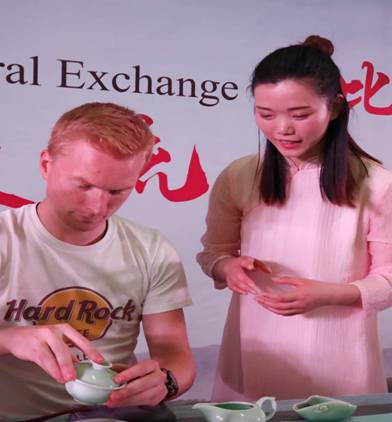 我们用中国最好的方式欢迎你们的到来,也衷心希望你们把中国的茶文化带回自己的国家,走向世界。