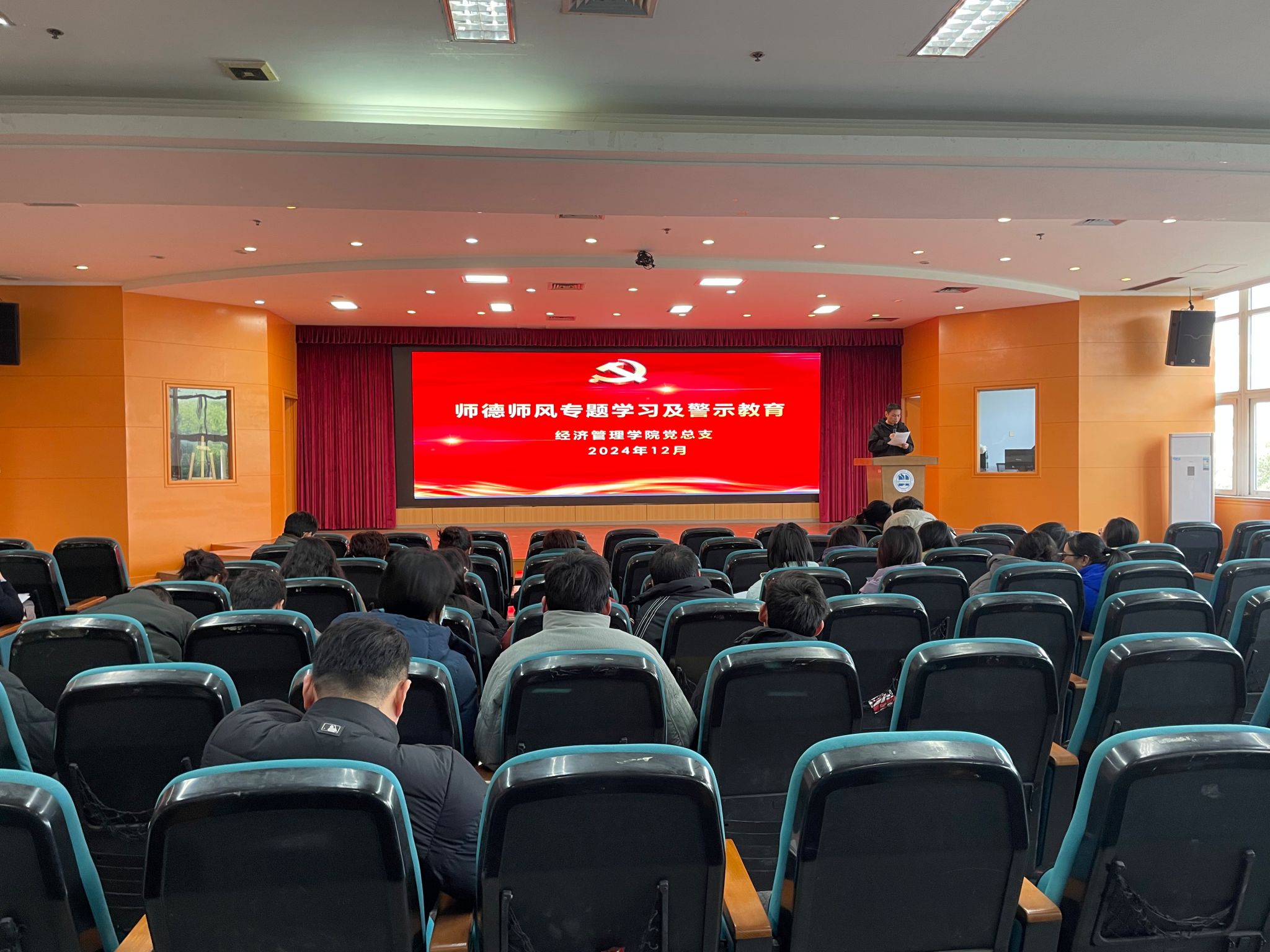 经济管理学院于12月17日下午在沙龙校区综合楼二楼学术报告厅召开了全体教职工大会暨集中政治学习。本次会议由学院专职组织员李静主持。