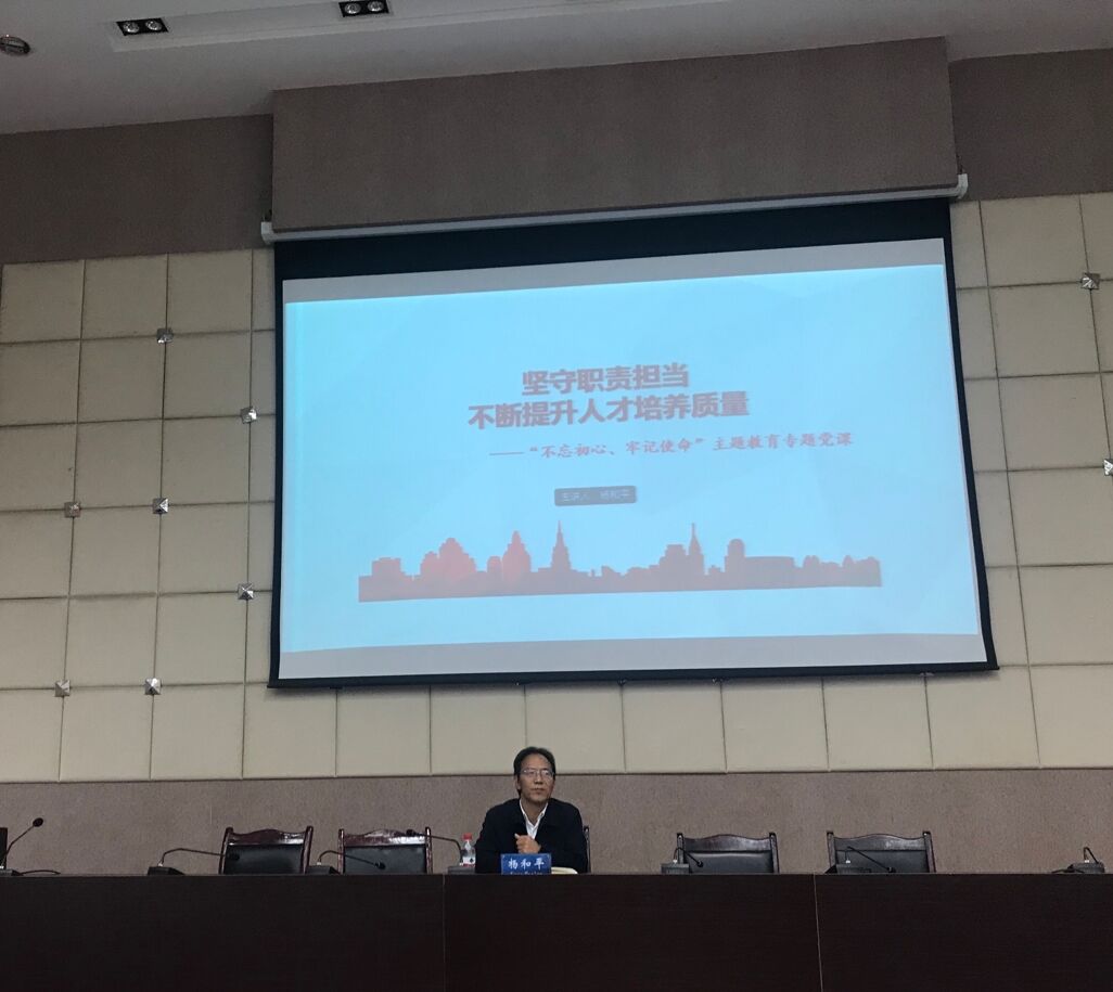 为深入开展“不忘初心、牢记使命”主题教育,10月23日下午,学校校长杨和平教授在学术报告厅为经济管理学院全体党员师生、入党积极分子和班团干部讲授了《坚守职责担当,不断提升人才培养质量》专题党课,党委办公室主任熊辉俊主持学习。