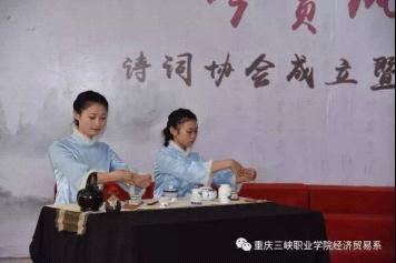 中国是茶的故乡,也是茶文化的发源地中国茶文化更是反映出中华民族悠久的文明和礼仪,下面就是学生代表带来的诗配茶表演《煮茶吟诗》;以及李白的洒脱豪迈与岳飞的将军豪迈诗词朗诵《将进酒》和《满江红》。茶的香浓与诗的意境真是让我们流连忘返。