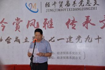 为学习贯彻习近平总书记在全国高校思想政治工作会议的讲话精神,履行立德树人根本职责,在“七一”中国共产党成立九十六年即将来临之际,经济贸易系于6月28日下午在学院学生活动中心举办“吟赏风雅,传承文化”诗词协会成立暨庆七一建党九十六周年活动。学院副院长杨建宏,学生处副处长黄莉,团委副书记马绍文,经济贸易系党总支副书记赵琳、主任周长春、副主任向月军参加了活动。杨建宏副院长作了开幕词。