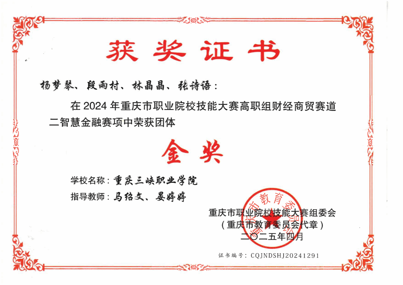 图3 2024年承办重庆市职业院校技能大赛智慧金融赛项一等奖