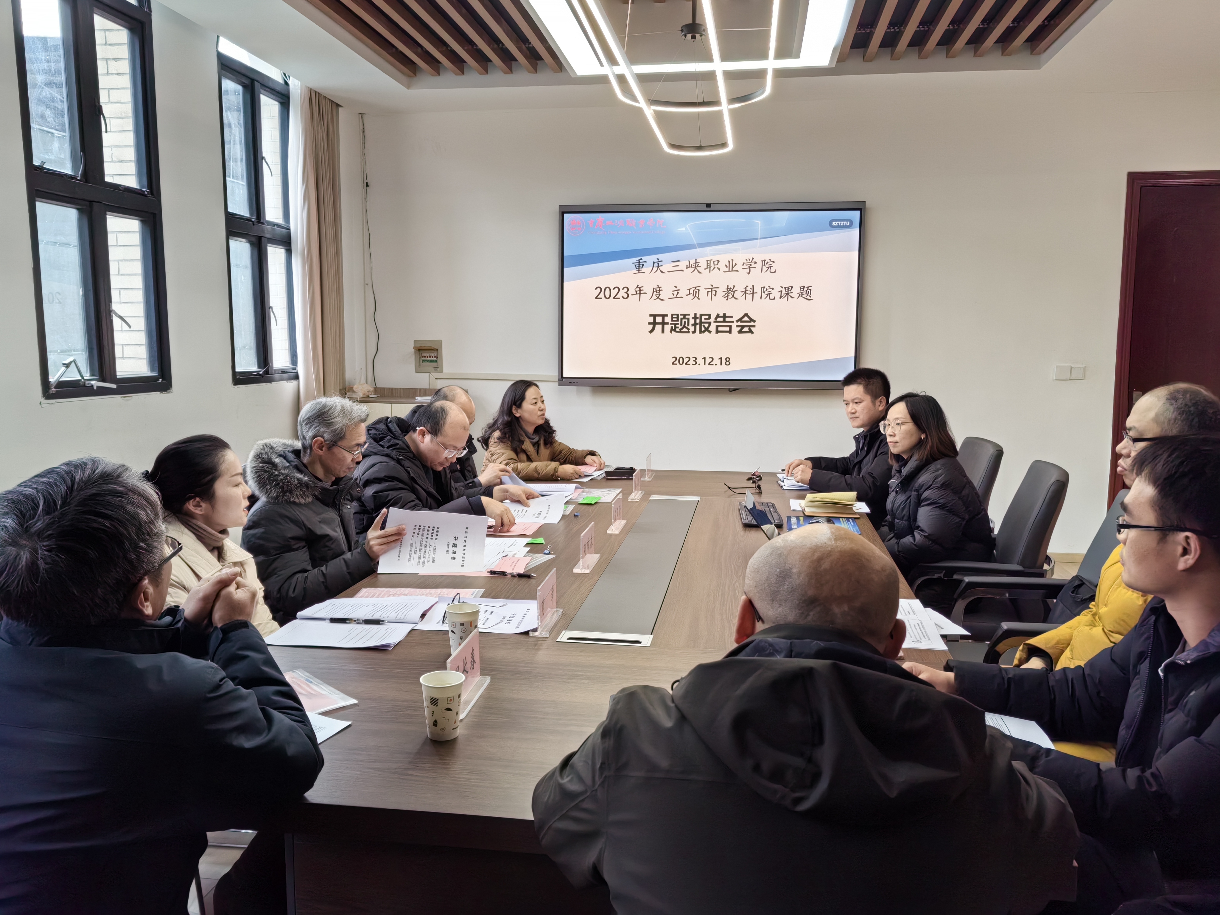 12月18日,2023年重庆市教育科学规划课题开题报告会在重庆三峡职业学院举行。此次开题论证会邀请了重庆三峡学院左正强、喻永红、刘耀森,重庆幼儿师范高等专业学校肖幸,重庆三峡职业学院周长春等5名教授专家莅临指导。