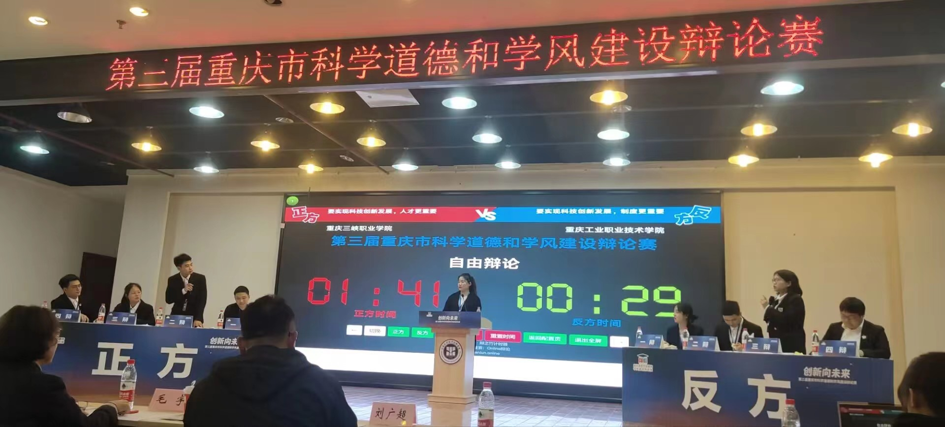 2023年3月15日,重庆三峡职业学院人工智能学院金博老师为领队兼青年教师的团队参加了第三届重庆市科学道德和学风建设辩论赛。