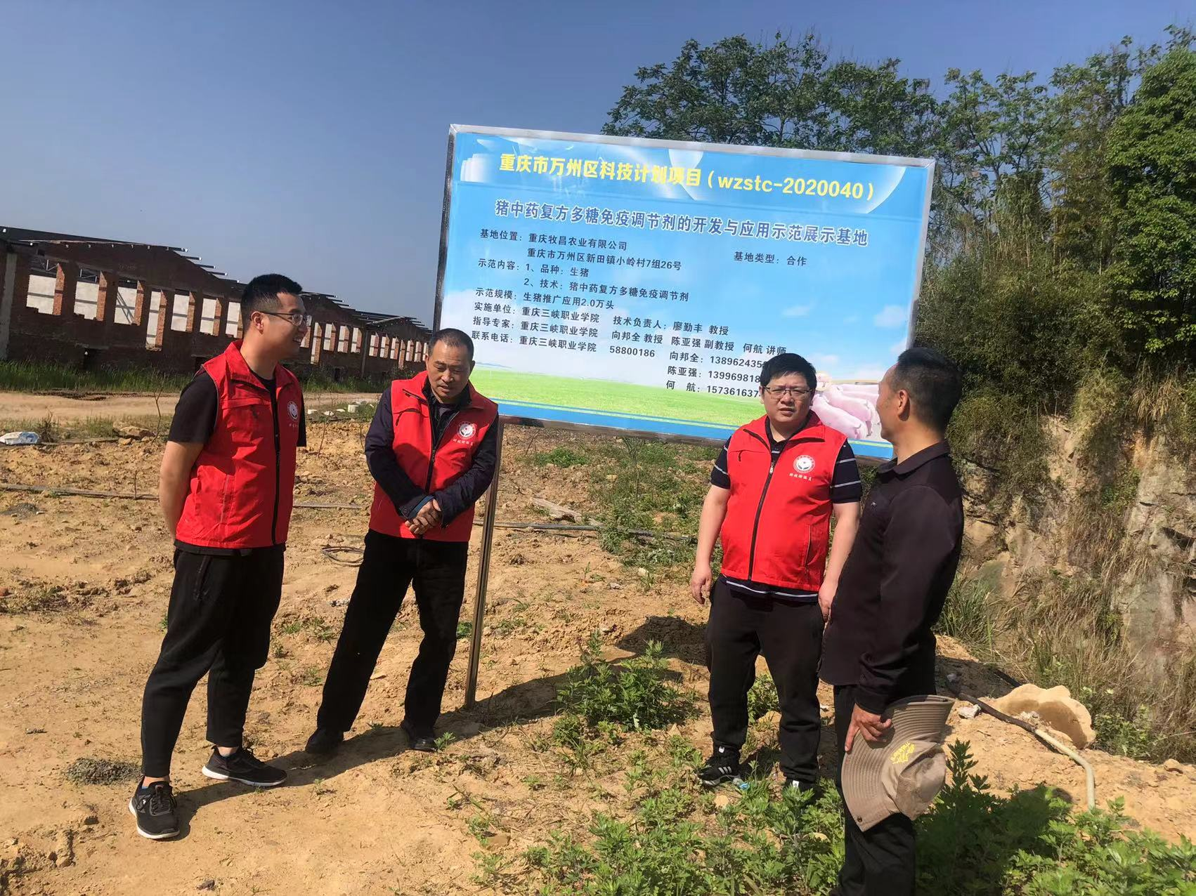 2022年4月,重庆市万州区生猪科技特派员服务团廖勤丰、向邦全、何航、李文娟,赴新田、长滩、茨竹三地开展万州“百万生猪”工程科技服务工作。廖勤丰一行赴新田镇重庆牧昌农业有限公司、长滩镇万州区槐树林养猪场,茨竹乡鹏文农业开发有限公司开展科技服务,为养猪场带去消毒防疫物质,并现场指导其猪场的粪污处理建设规划,解决粪污异位发酵、常见猪病防控技术难题等,并签订产学研合作协议,建立生态养殖示范场。