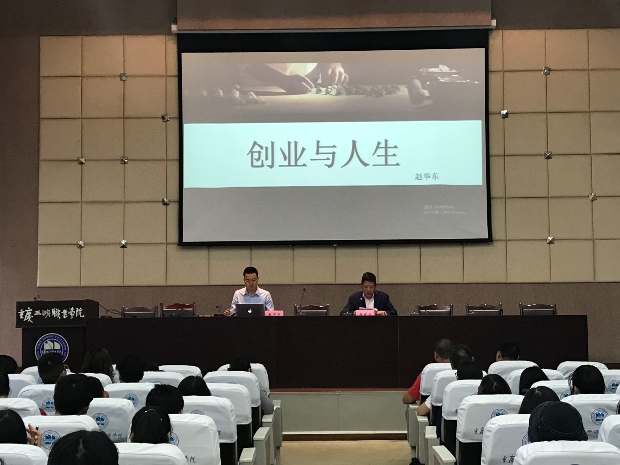 为深入贯彻落实全国教育大会精神,全面落实习近平总书记给中国“互联网+”大学生创新创业大赛“青年红色筑梦之旅”大学生的重要回信精神,加快培养创新创业人才,持续激发大学生创新创业热情,展示创新创业教育成果,搭建大学生创新创业项目与社会资源对接平台,5月29日,学校邀请了重庆猪八戒网络有限公司总监、成渝经济区创新创业联盟副秘书长赵华东先生为师生们作了一场题为“创业与人生”的讲座,让师生受益匪浅。此次讲座由杨建宏副校长主持,全校学工科科长、创新创业项目负责人、创新创业(参赛)项目指导老师及参赛学生共200人参加了讲座。