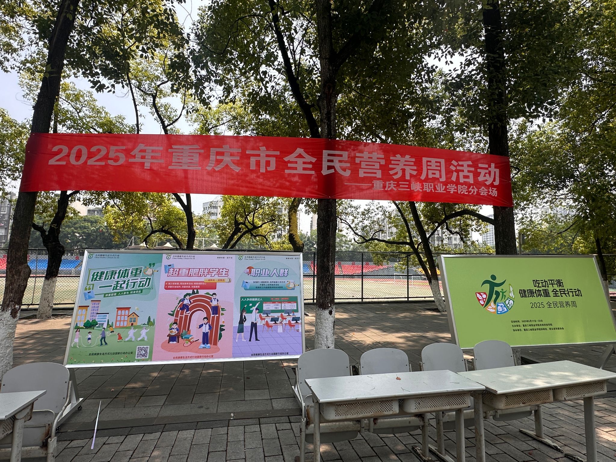 为积极响应《“健康中国2030”规划纲要》号召,倡导科学饮食理念,提升师生健康素养,5月19日,重庆三峡职业学院2025年“全民营养周”活动在学院樟树林正式启动。本次活动以“吃动平衡、健康体重、全民行动”为主题,通过多元形式普及营养知识,助力健康生活方式养成。