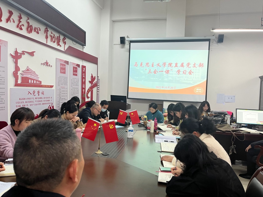 10月26日下午,马克思主义学院党支部在博雅楼109室开展“三会一课”和主题党日补充学习。会议由党支部副书记丁翠娟主持。