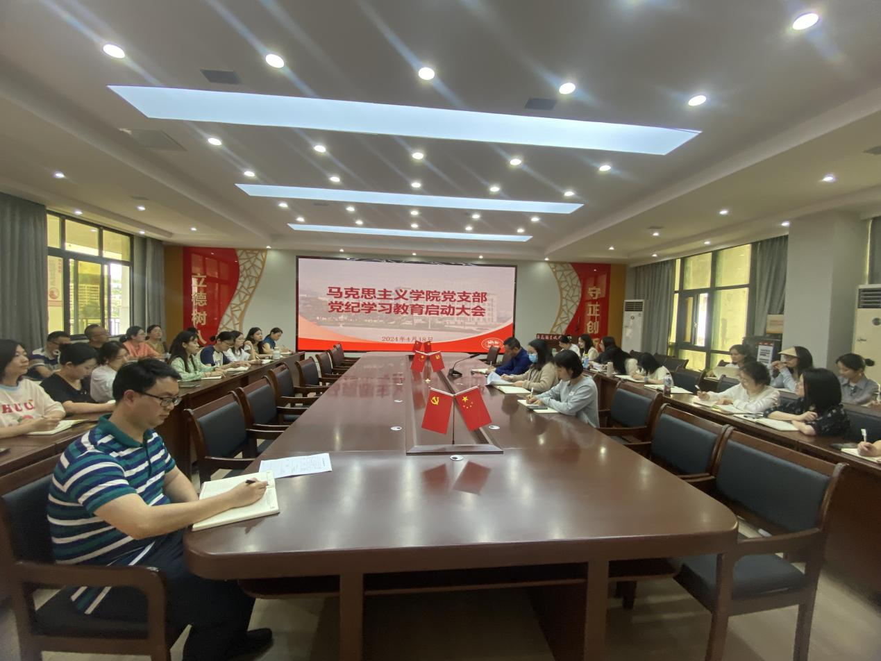 根据中央、市委关于开展党纪学习教育的要求和学院党委工作安排,马克思主义学院于4月18日中午在奥训楼403会议室召开支部党员大会进行集中专题学习,正式启动支部党纪学习教育,会议由组织统战委员马丽主持。
