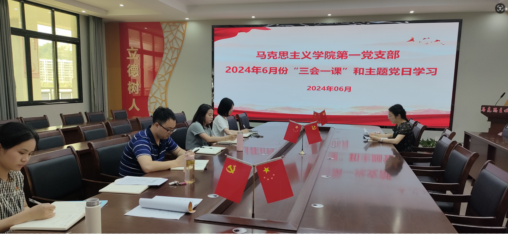 6月12日,马克思主义学院第一党支部于奥训楼403教室开展6月份“三会一课”及主题党日学习活动。马克思主义学院第一党支部党员同志参加,支部组织委员霍娜同志主持会议。