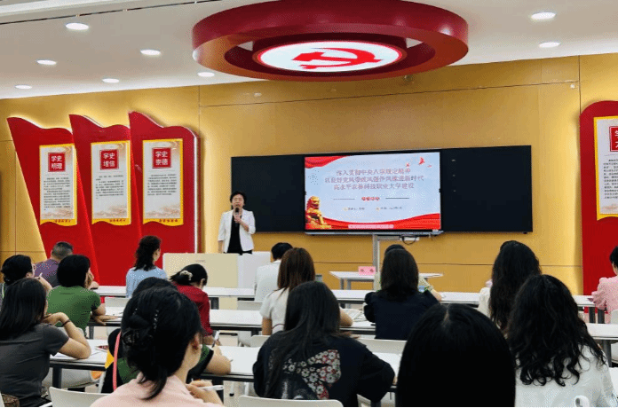 在授课中,杨梅副书记通过真实生动的案例,为党员教师敲响了警钟。她强调,全体党员教师要深入开展学习,对标对表查摆问题,列出整治清单开展集中整治。要把贯彻执行中央八项规定精神作为经常性工作、底线性任务来抓,健全作风建设常态化长效化制度机制,以优良作风推进学校事业高质量发展。