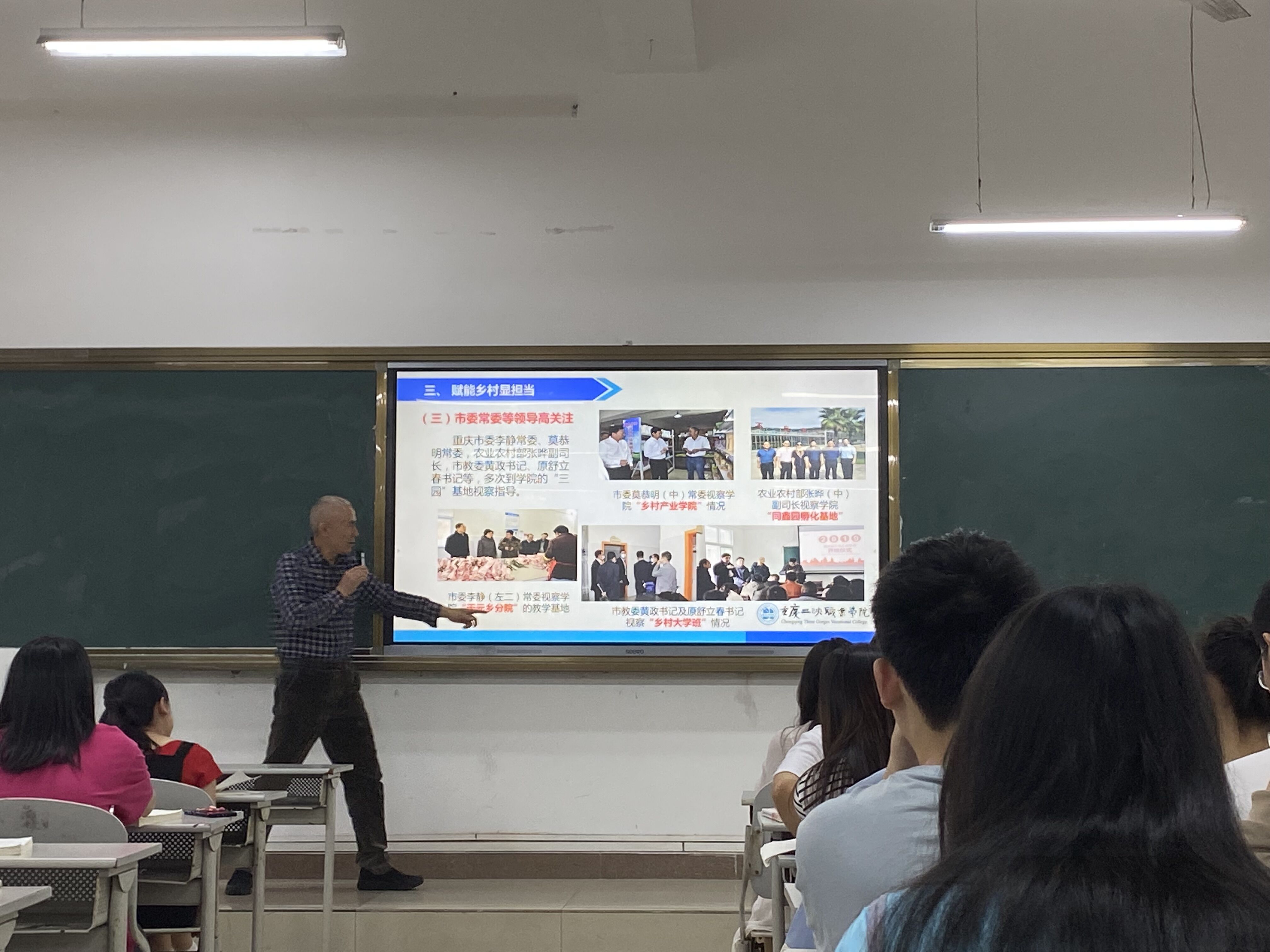 课上,赵校长从“乡村振兴及之难、不忘初心扛使命、抢答教育时代卷、赋能乡村显担当和下一步思路”等五个方面,详细讲述了乡村振兴提出的背景及战略安排、学校发挥“新农科”优势助力乡村振兴的具体担当和学校下一步助力乡村振兴的具体规划;课上,赵校长号召广大青年要将个人发展融入到乡村振兴的伟大征程中来。现场学生围绕乡村振兴和青年成长等问题积极提出自己的困惑,赵校长逐一解答,互动氛围良好,同学们获益良多。