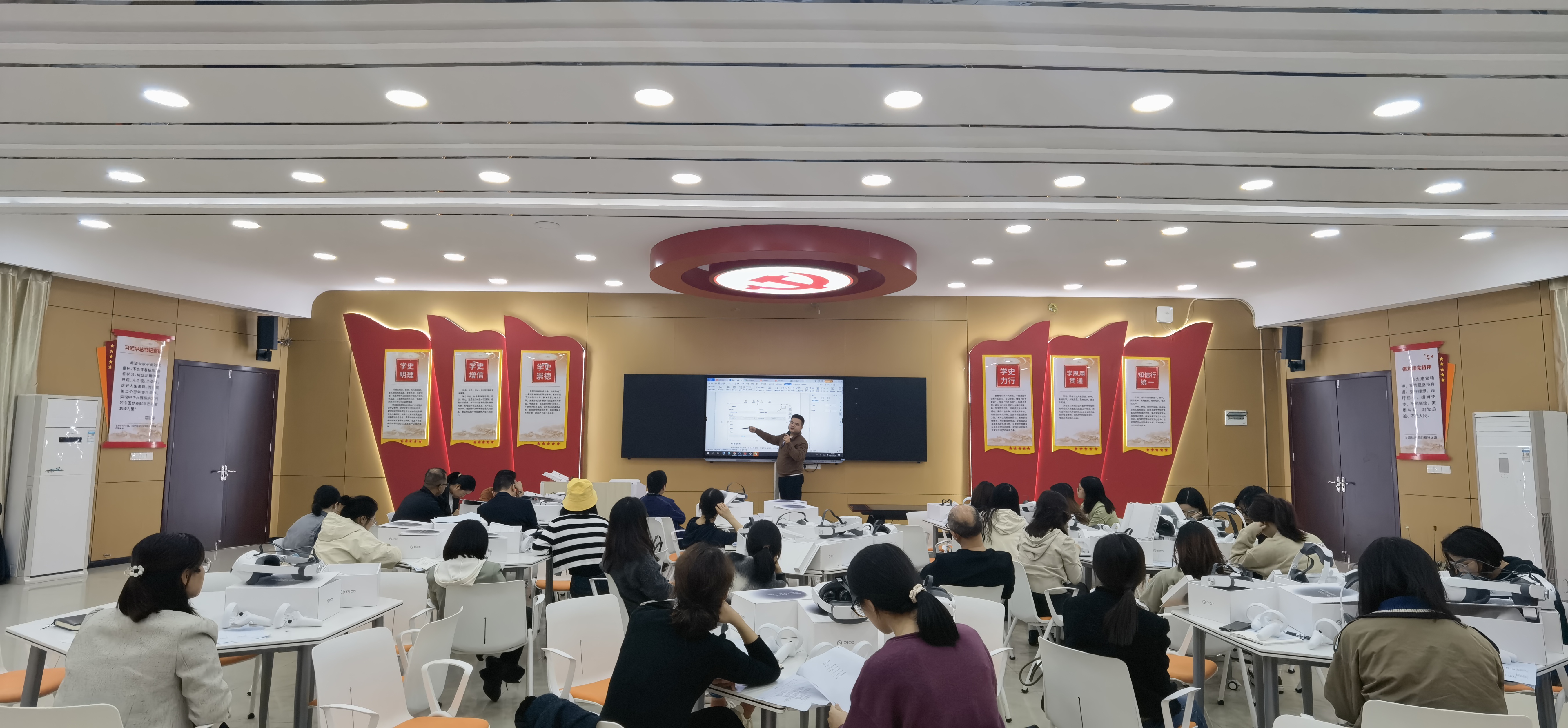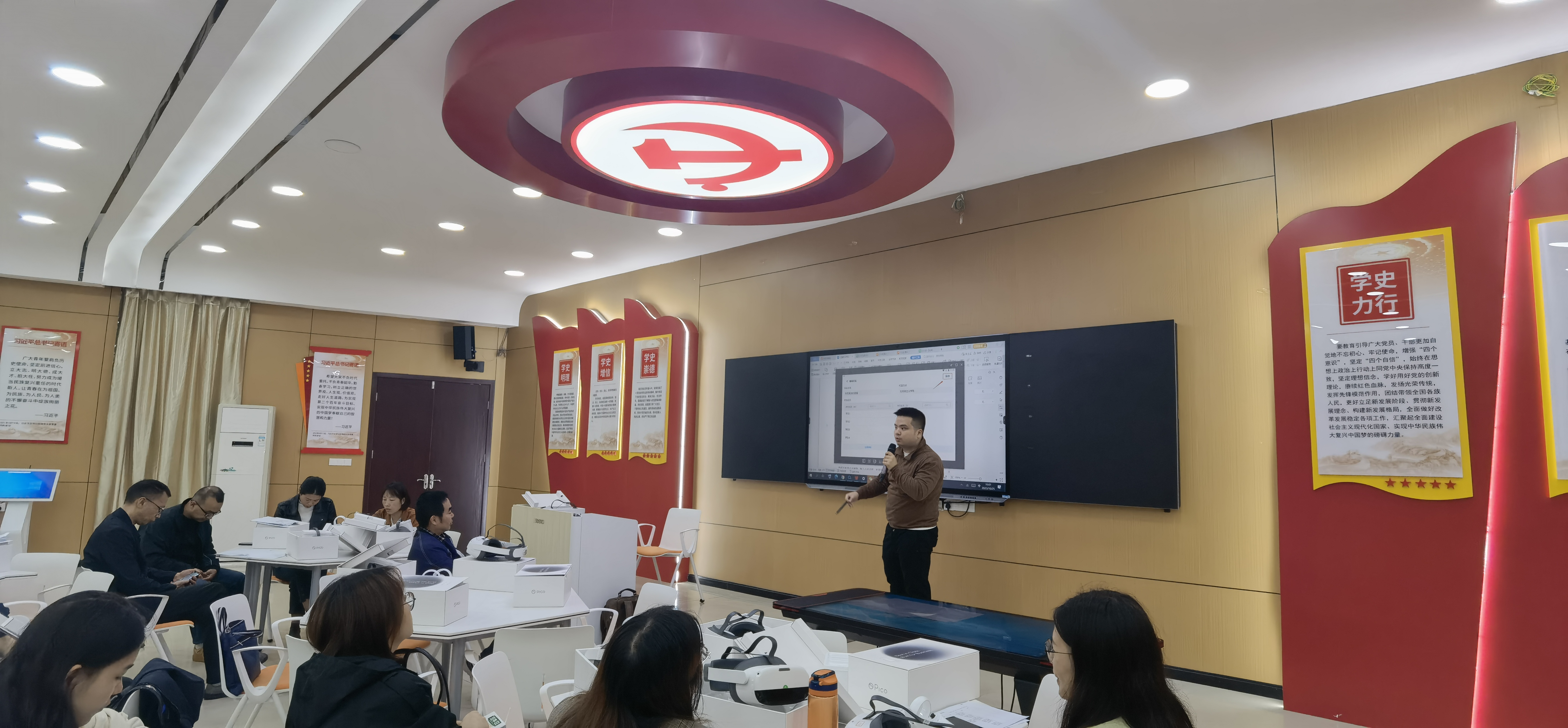 我校思政虚拟仿真实践教学中心是落实立德树人根本任务、推进思政课教学方法改革、提升思政课堂教学效果的重要途径。该实践教学中心承担着思想政治实践教学、爱国主义教育等关键任务。为进一步提升马克思主义学院教师软件操作能力、推动虚拟仿真实践中心建设,学院于10月25日下午,在博雅楼虚拟仿真实践教学基地为思政教师开展技术指导培训会。此次培训由学院邀请的湖南嘻呱科技有限公司技术人员担任主讲,我校全体思政专兼职教师参会。本次培训主要包括设备讲解和现场演示两个方面。
