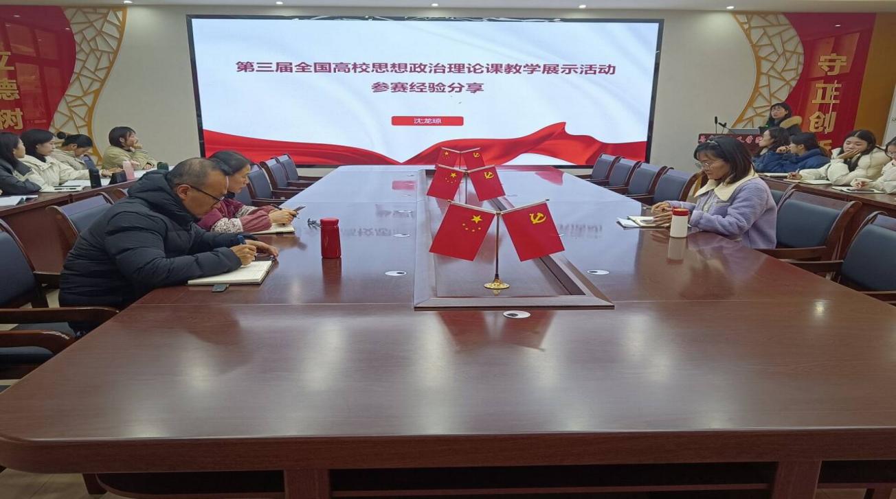 为进一步提高教师师德践行能力、专业教学能力、综合育人能力,提升教师教学比赛备赛能力与技巧,积极推进校级教师教学能力比赛活动,12月27日下午,学院开展2024年教师教学能力比赛经验分享,由第三届全国高校思想政治理论课教学展示活动参赛者沈龙琼老师为马克思主义学院全体教师就如何备赛分享经验,会议由马克思主义学院副院长丁翠娟主持,全体教师参与培训。