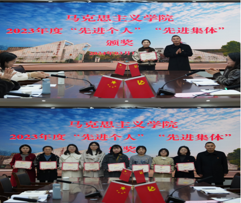 会前对2023年度马克思主义学院“先进个人”、“先进集体”以及2024年度思想政治理论课教师教学技能竞赛获奖情况进行了表彰。