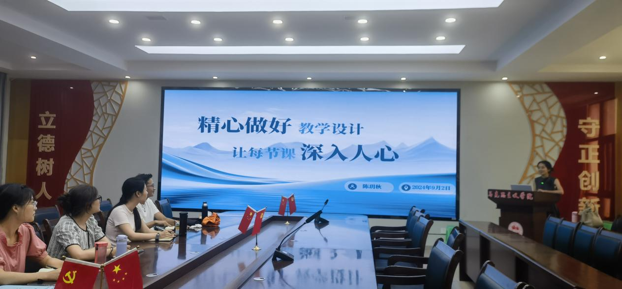 9月2日下午,《思想道德与法治》教研室陈玥秋老师进行了《精心做好教学设计,让每节课深入人心》的专题培训。陈玥秋老师以教学片段演示为引,提出“什么是教学设计——教学设计的作用——如何进行教学设计”的逻辑主线。她在阐明了教学设计的基本要素和一般流程后,强调新进教师应通过精构教学过程、深耕教学内容、创新教学方式等方法,在思政课堂上将道理讲深、讲透、讲活。