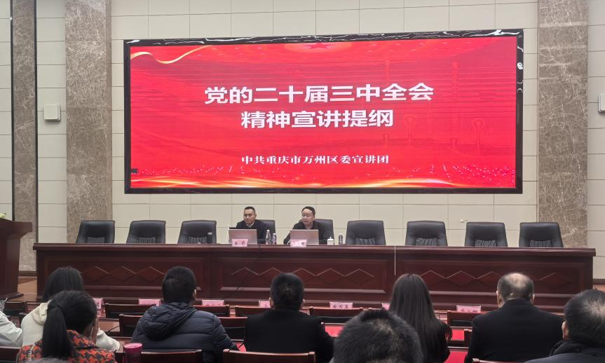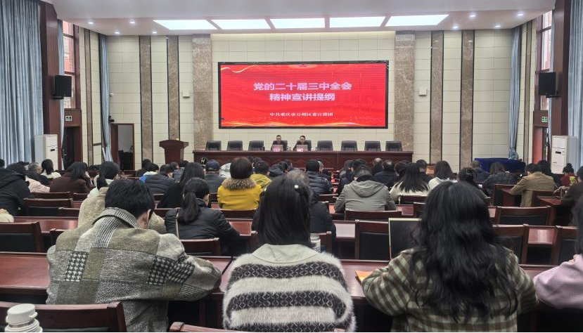 姜荣院长从四个方面对党的二十届三中全会精神进行了宣讲:这次全会是在以中国式现代化全面推进强国建设、民族复兴伟业的关键时期召开的一次十分重要的会议;深入学习领会习近平总书记在党的二十届三中全会上的重要讲话精神;全面准确理解《决定》提出的进一步全面深化改革重大举措;贯通学习习近平总书记对重庆改革工作所作的系列重要指示要求,高质量推进万州现代化建设。