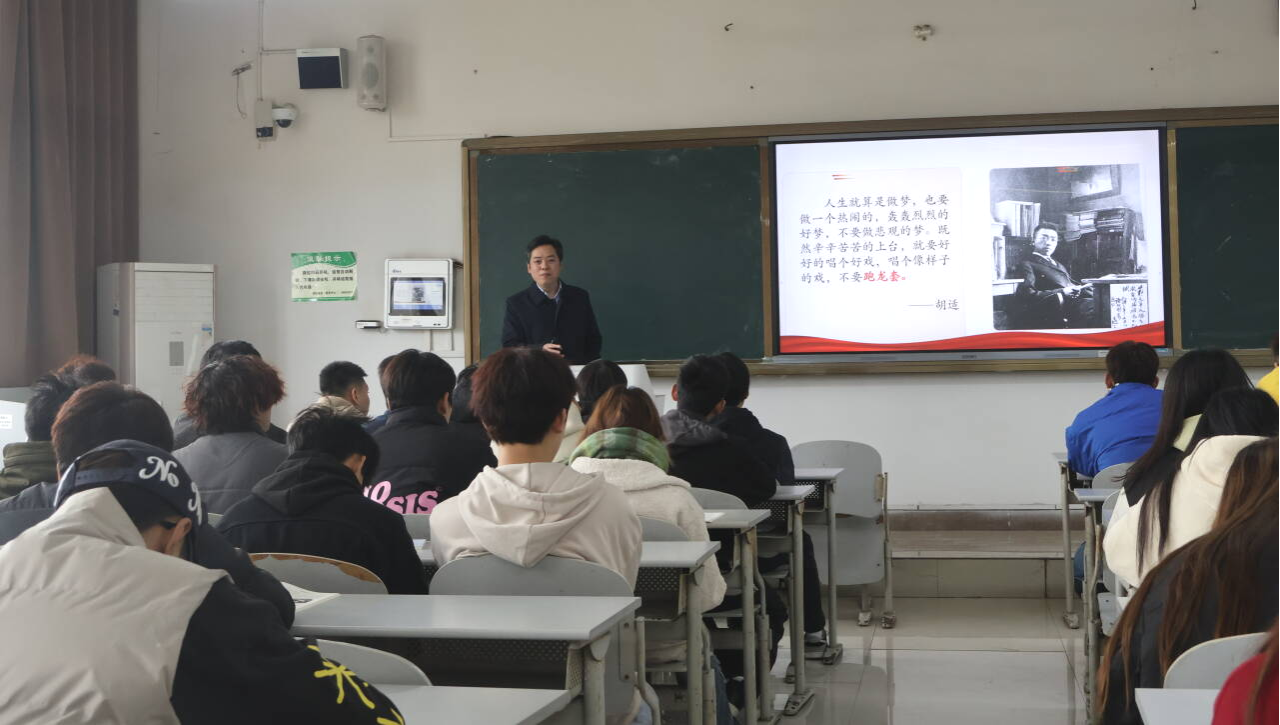 为深入贯彻习近平总书记对学校思政课建设作出的重要指示,更好地落实立德树人根本任务,切实发挥思想政治理论课主渠道、主阵地作用。11月29日上午,学院党委书记谈建成走进思政课堂,为智能制造学院2022级移动互联应用技术专业1班和2班的学生讲授了一堂具有思想性、理论性和亲和力的思政课。