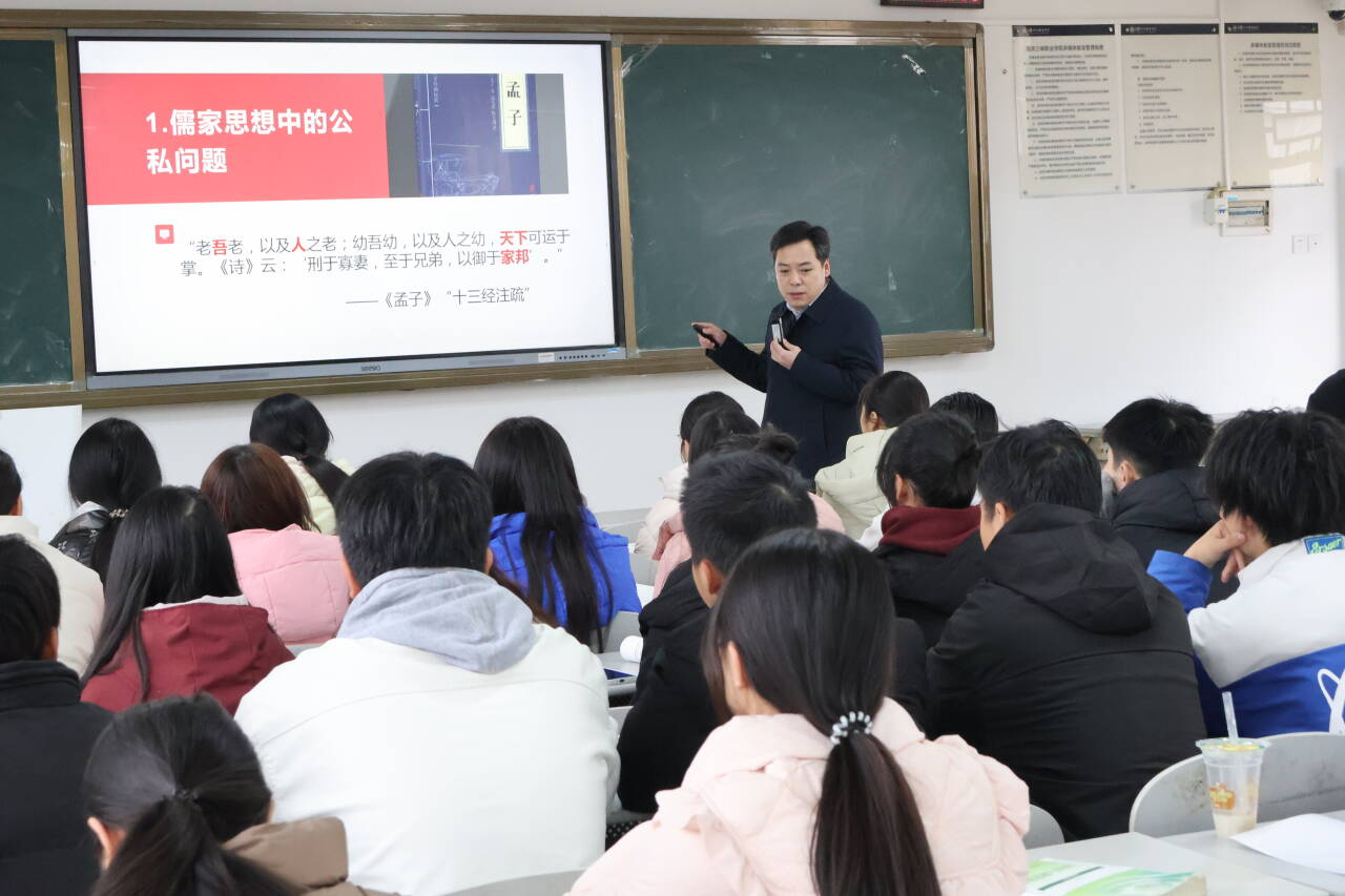 为深入贯彻党的二十大和二十届三中全会精神,全面落实全国教育大会精神和习近平总书记对学校思政课建设作出的重要指示精神,充分发挥思政课主渠道主阵地作用,12月13日上午,学院党委书记谈建成走进思政课堂,为2024级建筑室内设计2班、园林技术4班讲授了一堂生动的思政课。