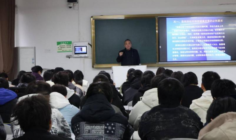 为深入学习贯彻习近平新时代中国特色社会主义思想,建设教育强国,人才强国,落实立德树人根本任务,12月11日,学院院长李炯光以《如何理解“坚持以高质量发展为主题,全面建设社会主义现代化国家”》为题,给2024级电子信息工程技术1班和2班的同学上了一堂内容丰富、形式多样的思想政治理论课。