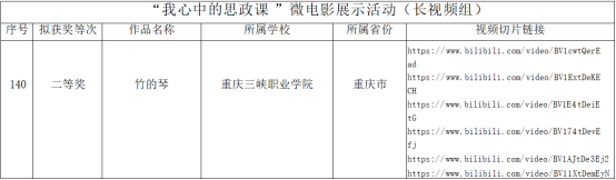 在“我心中的思政课”——第八届全国高校大学生微电影展示活动中,我院选送的微电影《竹的琴》作品,以习近平文化思想为指导,以非遗文化竹琴艺术传承创新为主线,通过独特的视角、深刻的主题和精湛的制作技艺,展现了竹琴艺术的独特魅力和我院师生对传统文化的深情厚谊。在1006所高校提交的3134部微电影作品中,《竹的琴》脱颖而出,荣获全国二等奖(长视频组)。