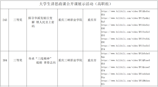 与此同时,在“七十五载薪火传承,千秋伟业奋斗有我”——第八届全国高校大学生讲思政课公开课展示活动中,我院的两部作品《传承“三线精神”砥砺青春志向——走进816工程遗址》和《探寻华溪发展巨变 解锁人民至上密码》也在1339所高校提交的5007部作品中脱颖而出,均荣获全国三等奖(高职组)。这两部作品不仅展现了我院学生对国家发展历程的深刻理解,也体现了他们在思政课学习中的积极参与和深入思考。