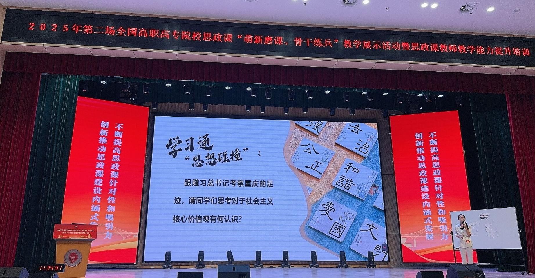 5月17日,全国高职高专院校思想政治理论课建设联盟主办的2025年第二场全国高职高专院校思政课“萌新磨课、骨干练兵”教学展示活动圆满落下帷幕。本次教学展示活动共收到“萌新磨课”组作品98个、“骨干练兵”组作品95个。经线上专家匿名评审和现场教学展示环节,共评选出“萌新磨课”组特等奖 5 个、一等奖15 个、二等奖 36 个,“骨干练兵”组特等奖 5 个、一等奖 15 个、二等奖 35 个。我校马克思主义学院思政课教师刘婵斩获《思想道德与法治》课程“萌新磨课”组全国“特等奖”,实现我校在此项赛事上新的突破!