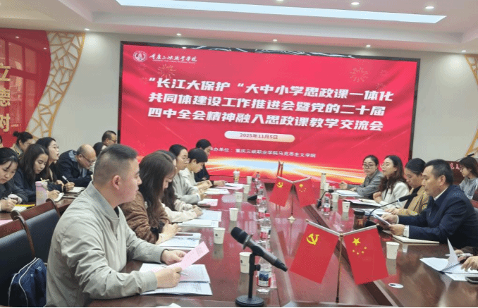 为深入推动“长江大保护”主题下大中小学思政课一体化建设,促进党的二十届四中全会精神有机融入各学段思政课教学,11月5日,工作推进会暨教学交流会在我院奥训楼403成功举办。会议由马克思主义学院院长姜荣主持,大中小学思政课一体化共同体各成员单位相关负责人参加。