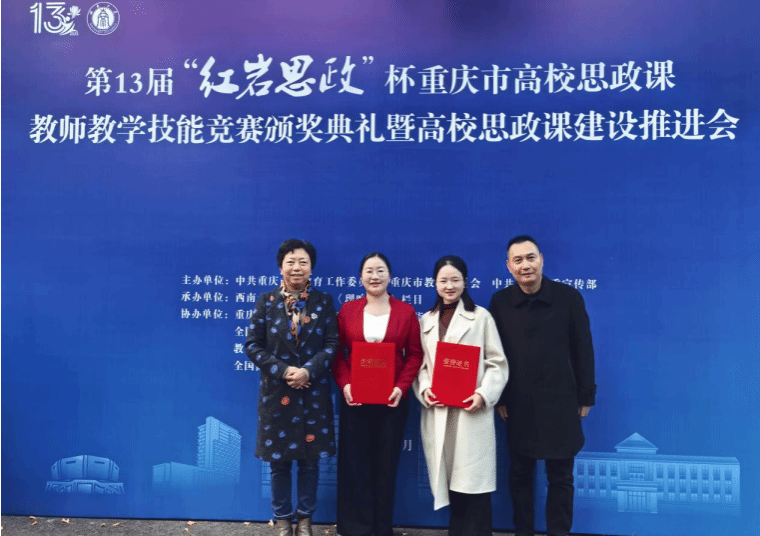 近日,由重庆市委教育工委、重庆市教委、重庆市委宣传部联合主办的第13届“红岩思政”杯重庆市高校思政课教师教学技能竞赛决赛在西南大学落下帷幕。我校马克思主义学院教师熊桂花、林虹霞,均斩获一等奖,创下我校在该赛事决赛环节的历史最佳战绩,充分彰显了学院思政课教学改革创新的显著成效。