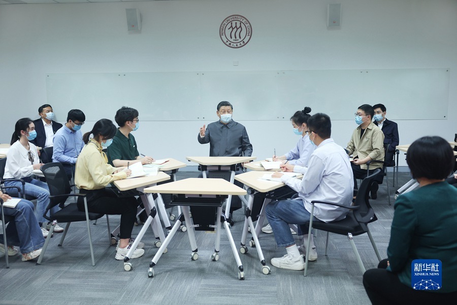 4月25日上午,中共中央总书记、国家主席、中央军委主席习近平来到中国人民大学考察调研。这是习近平同师生代表座谈并发表重要讲话。新华社记者 鞠鹏 摄