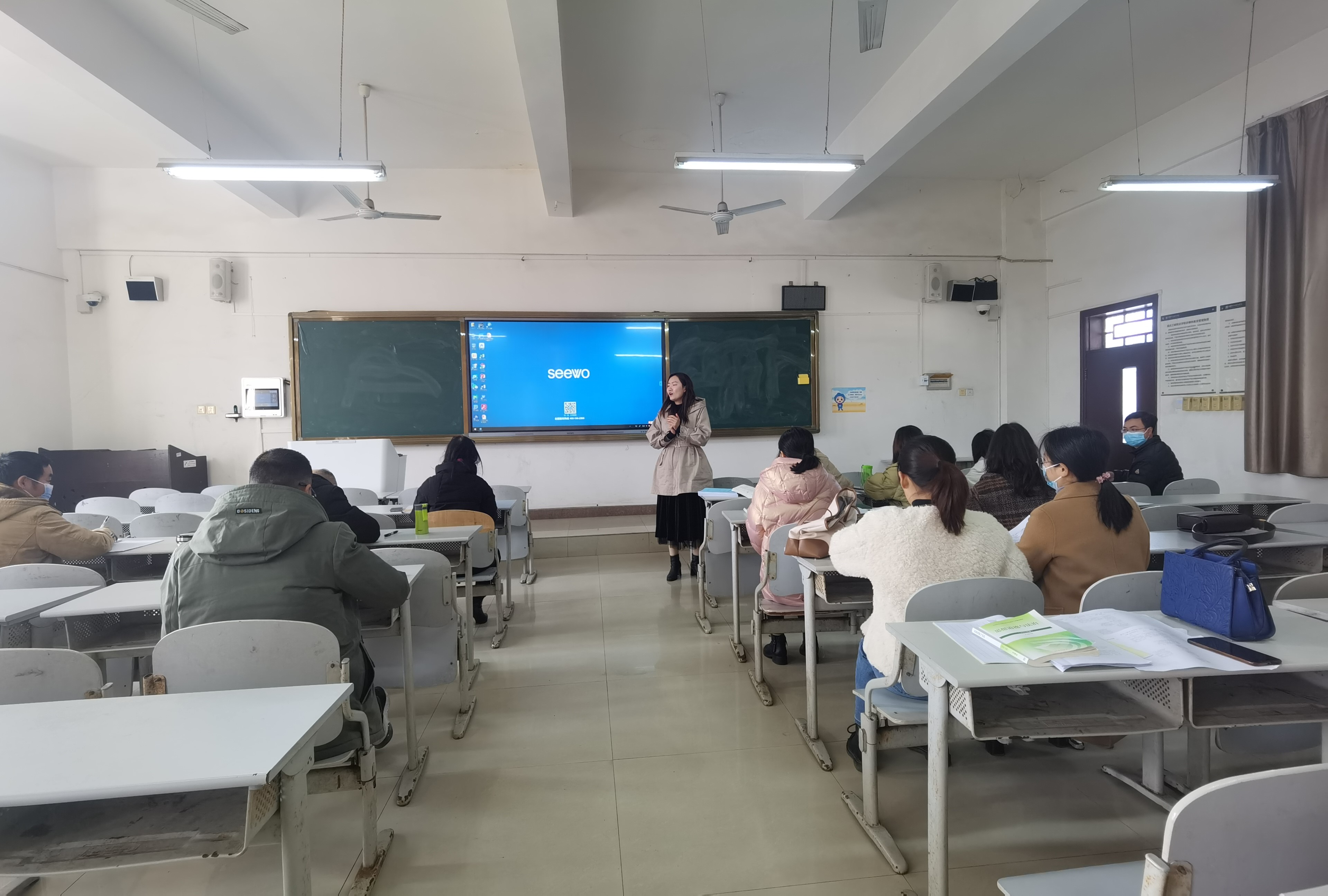 杨梅老师在传达会议内容的基础上进一步对各位老师提出了新学期的工作注意事项。一是各位老师要根据集体备课的意见修改完善教学课件,即时熟悉课件内容;二是要做好开学第一课关于安全教育的宣传工作;三是各位老师要根据集体备课尽快思考专题的复习题目;四是各位老师要注意维护基本课堂秩序,提前十分钟到教室、佩戴党徽、带上教案、教材和授课计划,做好充足的课前准备工作;五是每日坚持用好学习强国,营造良好学习氛围,将习近平总书记最新讲话精神运用到教学过程中等。