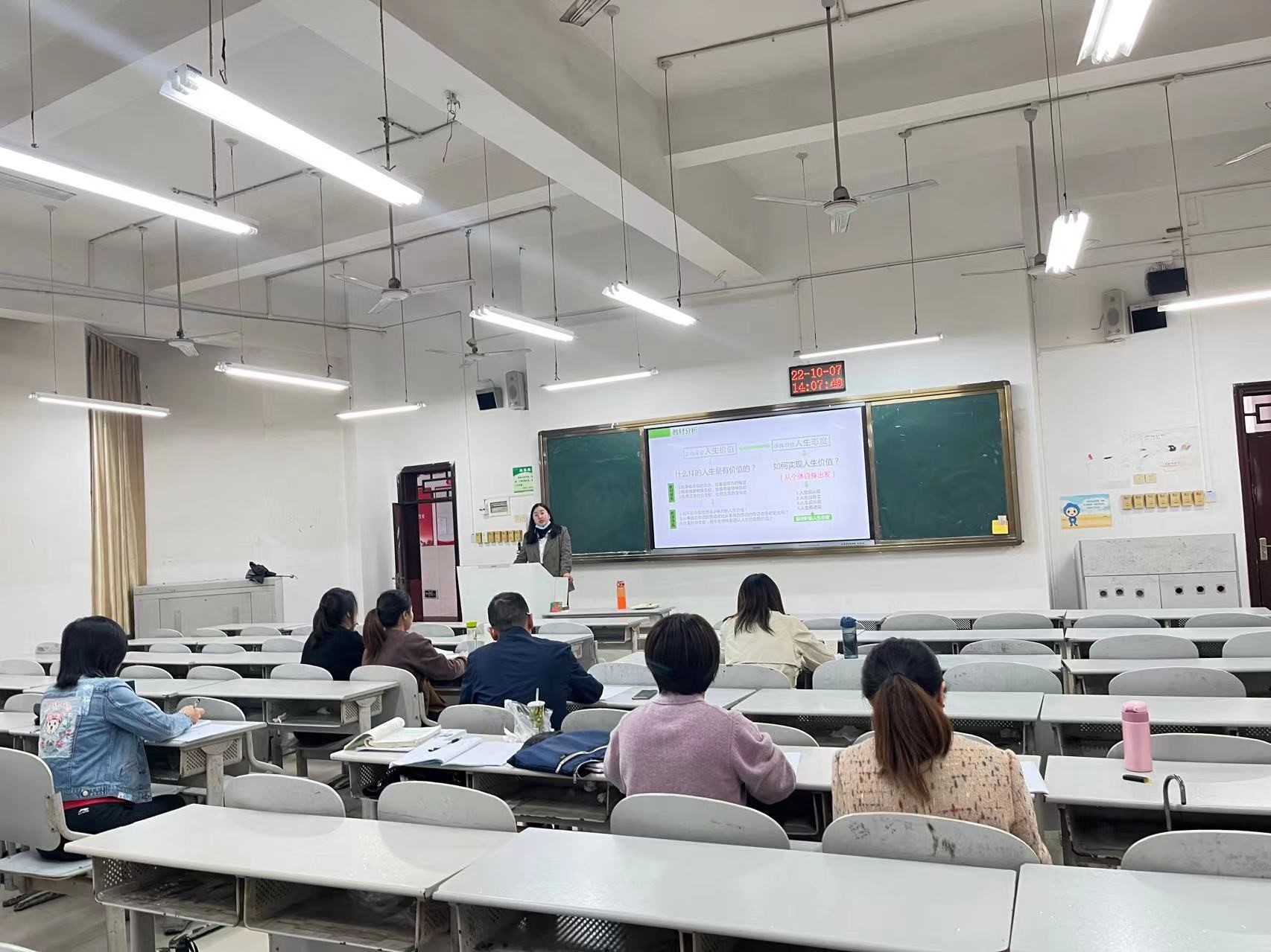 2022年10月7日,《思想道德与法治》教研室在博雅楼108教室进行集体备课。本次集体备课会由教研室主任熊桂花主持,由丁翠娟、熊桂花和彭钦、杨梅老师分别就专题二的主题二“正确评价人生价值 保持积极人生态度”、专题二的主题3“反对错误人生观”进行同课异构。熊桂花老师针对主题2进行了教学分析、学情分析,拟定了教学目标、教学重难点,分享了教学理念、教学核心,围绕“什么样的人生更有价值?”、“为什么要保持积极进取的人生态度?”和“人生为何不能躺平?”等内容分享教学设计。随后,其他老师集思广益,提出可进一步结合学生补充教学材料、设置主题讨论,以达到更好的教学效果。