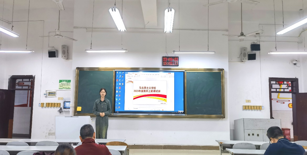 为提高8位新入职教师的课堂教育教学水平和教学组织能力,帮助新入职教师尽快适应工作岗位和角色转换,实践中锻炼新教师的教学能力,促进教师间的学习和交流,切实提升教学质量,9月23日下午14:00,马克思主义学院办公室联合各教研室,在博雅楼108教室开展2023年度教师上新课试讲活动。学院党委委员、宣传部部长、马克思主义学院院长姜荣、全体教研室主任及相关教师参加此次新教师试讲活动。