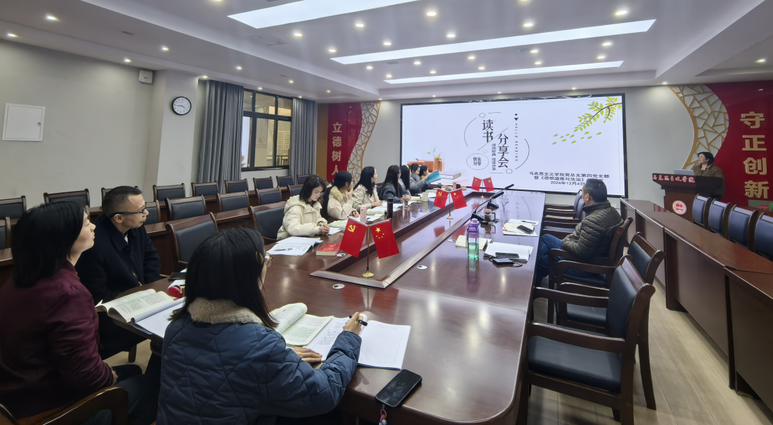 为持续推进“书香马院”建设,提升教师的知识素养和文化内涵,推动我院思想政治理论课内涵式发展,12月4日,马克思主义学院党总支第四党支部暨《思想道德与法治》教研室于奥训楼403开展“浸润经典 悦读分享”读书沙龙活动。《思想道德与法治》教研室12名教师参加,马克思主义学院院长姜荣出席活动,教研室主任熊桂花主持活动。