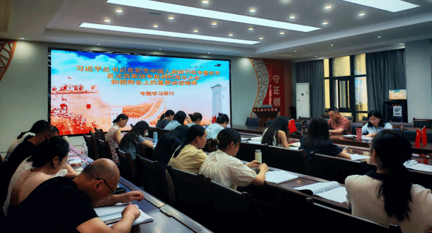9月9日上午,《思想道德与法治》教研室在奥训楼403开展习近平总书记在纪念中国人民抗日战争暨世界反法西斯战争胜利80周年大会和招待会上的重要讲话精神、在《求是》杂志上发表的《弘扬伟大抗战精神,向着中华民族伟大复兴的光辉彼岸奋勇前进》重要文章精神专题学习研讨,马克思主义学院院长姜荣、《思想道德与法治》教研室全体教师、部分其他教研室教师参加。