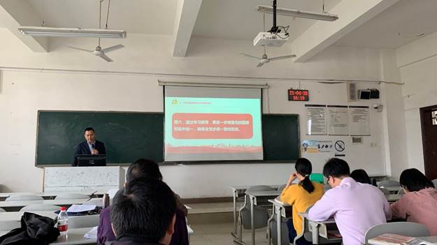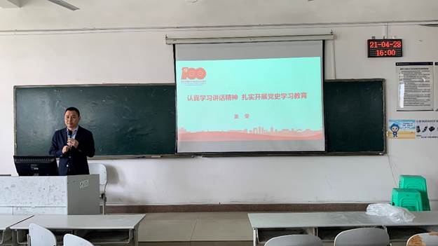 人无精神则不立,国无精神则不强。开展党史学习教育,是牢记初心使命、推进中华民族伟大复兴历史伟业的必然要求,是坚定信仰信念、在新时代坚持和发展中国特色社会主义的必然要求,是推进党的自我革命、永葆党的生机活力的必然要求。为深入开展党史学习教育,4月28日下午,马克思主义学院举办党史学习教育专题党课。学院党委委员、宣传部部长、马克思主义学院院长姜荣同志以《认真学习讲话精神 扎实开展党史学习教育》为主题,为马克思主义学院全体教师上了一堂生动的专题党课。