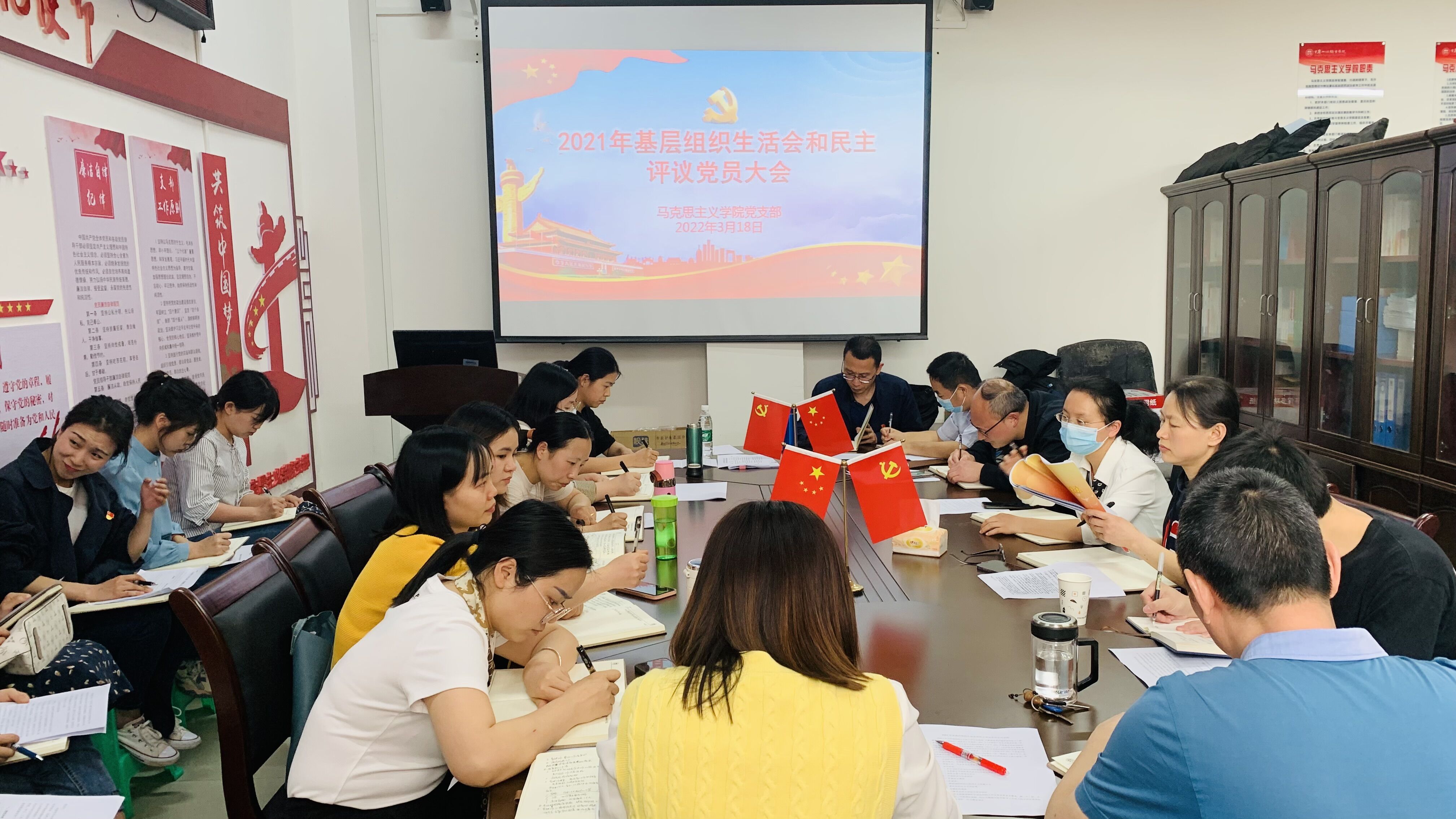 为深入学习贯彻党的十九届六中全会精神,不断推进党的建设新的伟大工程,2022年3月18日14时—18时,马克思主义学院直属党支部在博雅楼109室召开了民主生活会和民主评议党员大会,会议党支部副书记丁翠娟同志主持,学校纪检监察室顾宇飞同志到会指导工作。