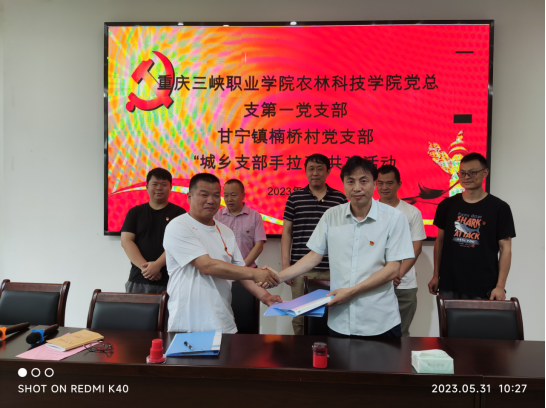 为充分发挥党建引领作用,农林科技学院党总支第一党支部于5月31日赴万州区甘宁镇楠桥村党支部开展“城乡支部手拉手”活动。