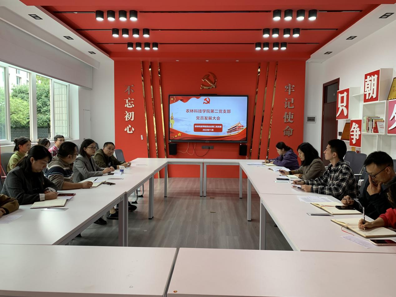 2023年11月10日,农林科技学院第二党支部在农林楼203会议室开展党员发展大会,会议由支部书记吴琼同志主持。