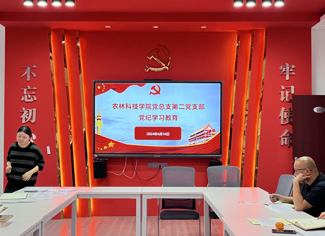 2024年4月17日,农林科技学院第二党支部在农林楼203会议室开展4月主题党日活动,“三会一课”政治理论学习,以及党纪学习教育。会议由支部书记吴琼同志主持,吴琼同志领学。