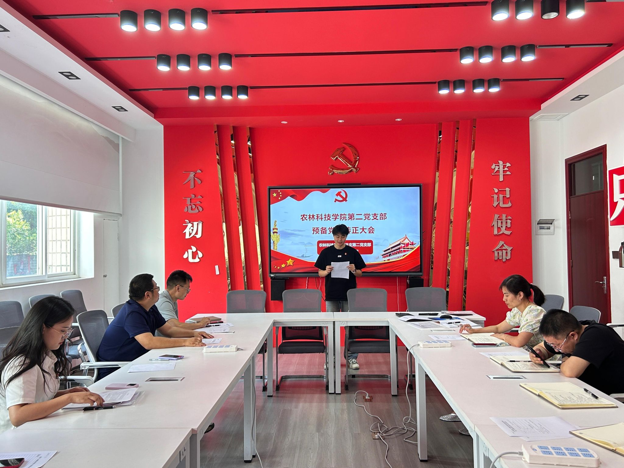 6月19日,农林科技学院第二党支部在农林楼203会议室召开预备党员转正大会,全体党员参会,会议由支部书记吴琼同志主持。