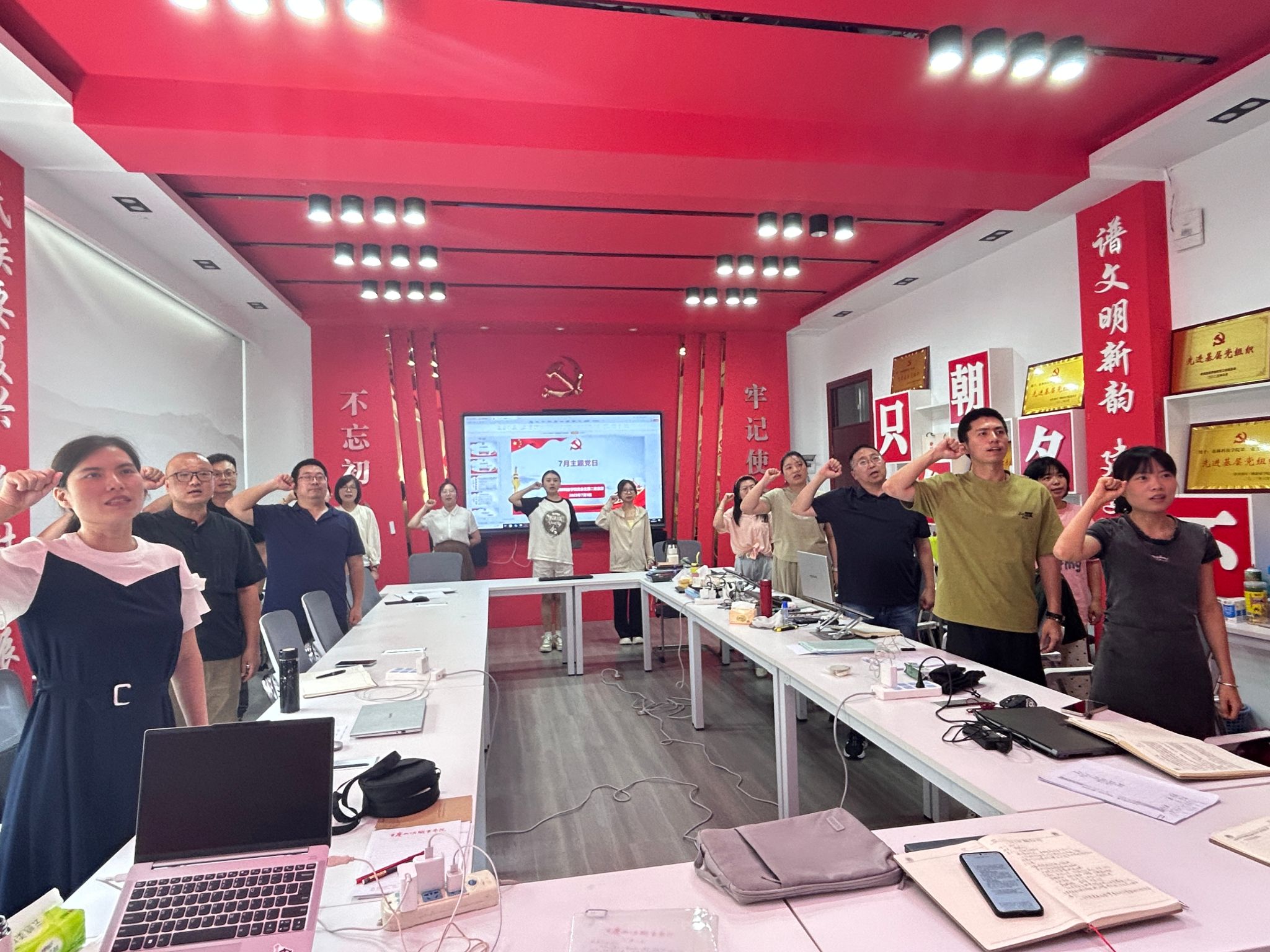 为庆祝中国共产党成立104周年,活动中,新发展的预备党员和支部党员们一起举行了庄严的入党宣誓仪式。面对鲜红的党旗,党员们高举右手,庄严宣誓,铿锵有力的誓言在会议室里回荡,表达了党员们对党的无限忠诚和为共产主义事业奋斗终身的坚定决心。宣誓结束后,党员们纷纷表示,将时刻牢记入党誓词,不忘初心、牢记使命,以更加饱满的热情和更加严谨的态度投入到工作和学习中,发挥好党员的先锋模范作用。