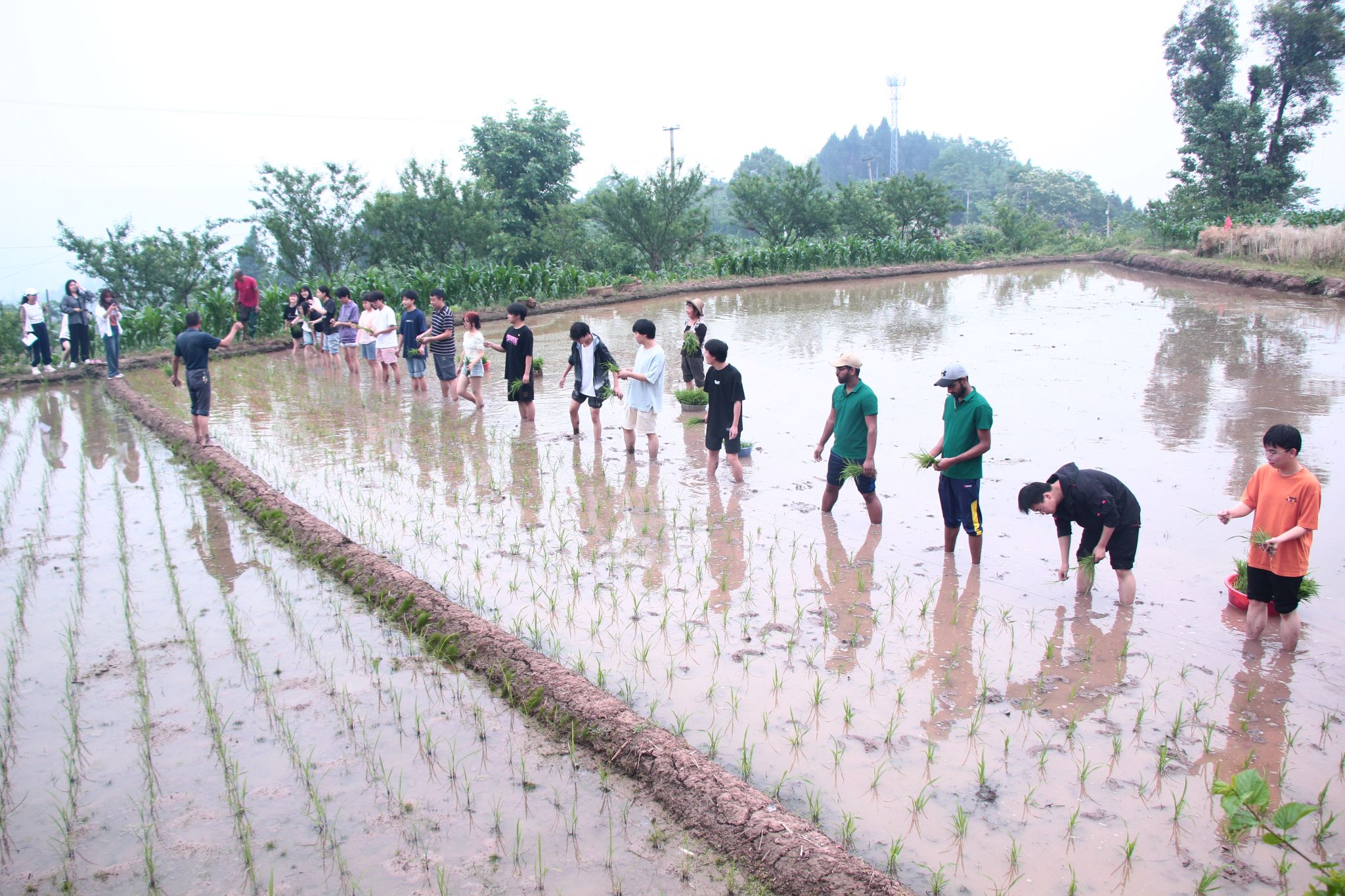 随后,师生们在村民的带领下分组开展了助农插秧活动。大家卷起裤腿,赤脚走进水田,一开始,不少人动作生疏,秧苗插得歪歪扭扭。但在村民们的耐心指导下,大家逐渐掌握了插秧的技巧,动作越来越熟练。
