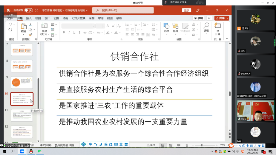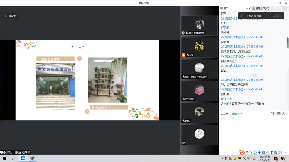 2022年9月25日上午9-11时,园艺技术专业2022级新生在腾讯会议上举行了优秀毕业生成长分享和企业专家讲座。会议由专业主任吴琼主持,邀请了2019园艺技术专业毕业生刘校婷做优秀毕业生成长分享、邀请了重庆智慧农服集团分公司总助石安全做企业专家讲座。刘校婷讲述了她在园艺领域的求学、求职经历,给同学们传授了很多经验。石安全讲述了园艺行业发展现状、企业文化和企业与岗位对学生的要求。他们还给同学们提出了很多的建议并和同学们进行了热烈的交流。
